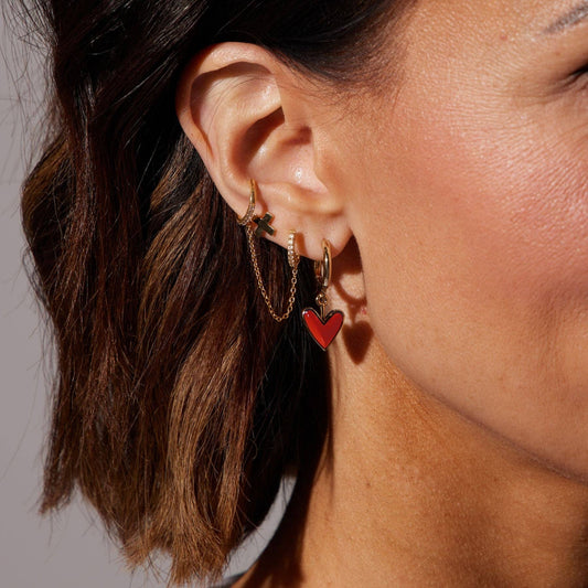 Checkered Enamel Huggies | Red & Yellow
