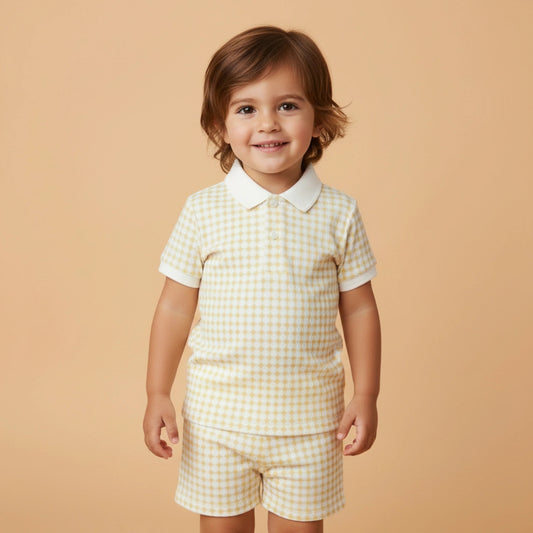Organic Collar Tee & Short Set | Dotty Gingham