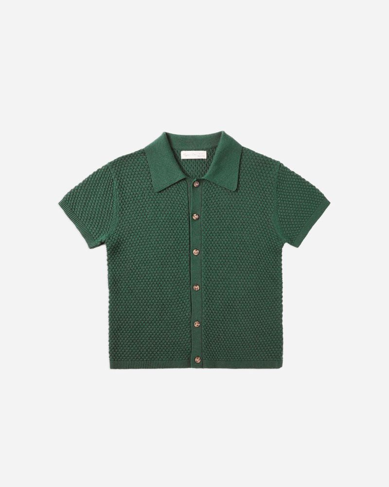 This textured knit button-down blends classic old-money charm with a sporty edge.