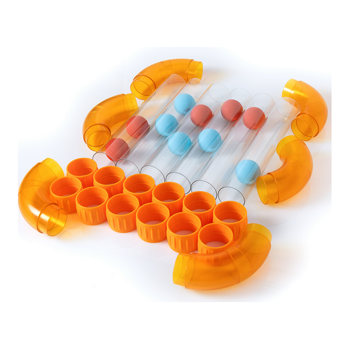 - Includes 6 transparent 12-inch tubes, 6 transparent orange corner tubes, 12 easy-fit connectors, 10 colorful EVA foam balls
