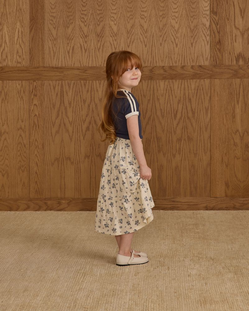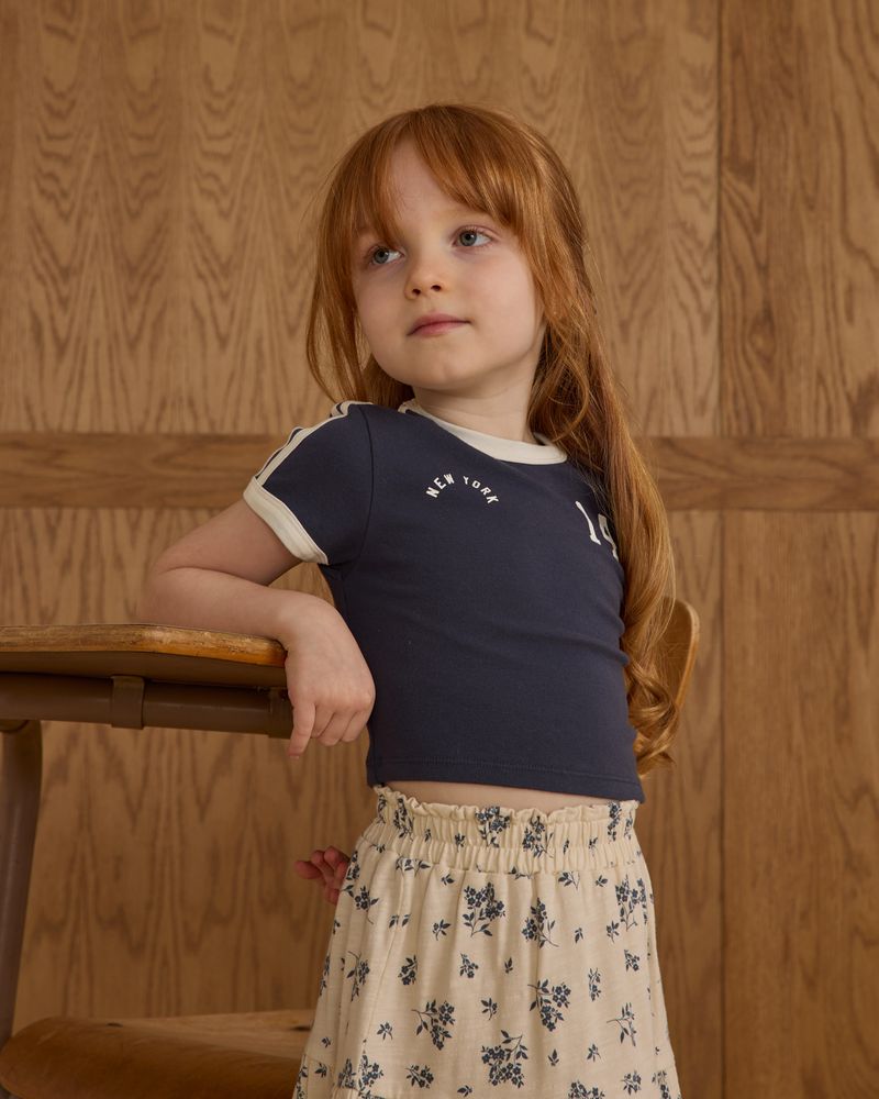 Baby Tee featuring contrast stripes at the neckline, shoulders, and sleeves for a sporty, standout look.