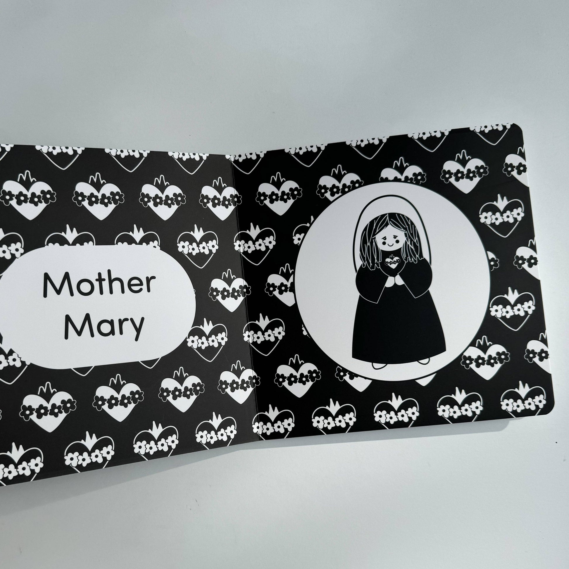 Introducing "Baby's 1st Catholic Book: A High Contrast Book," a specially designed board book to engage and stimulate your baby's developing vision and brain AND introduce them to our beautiful Catholic faith.
