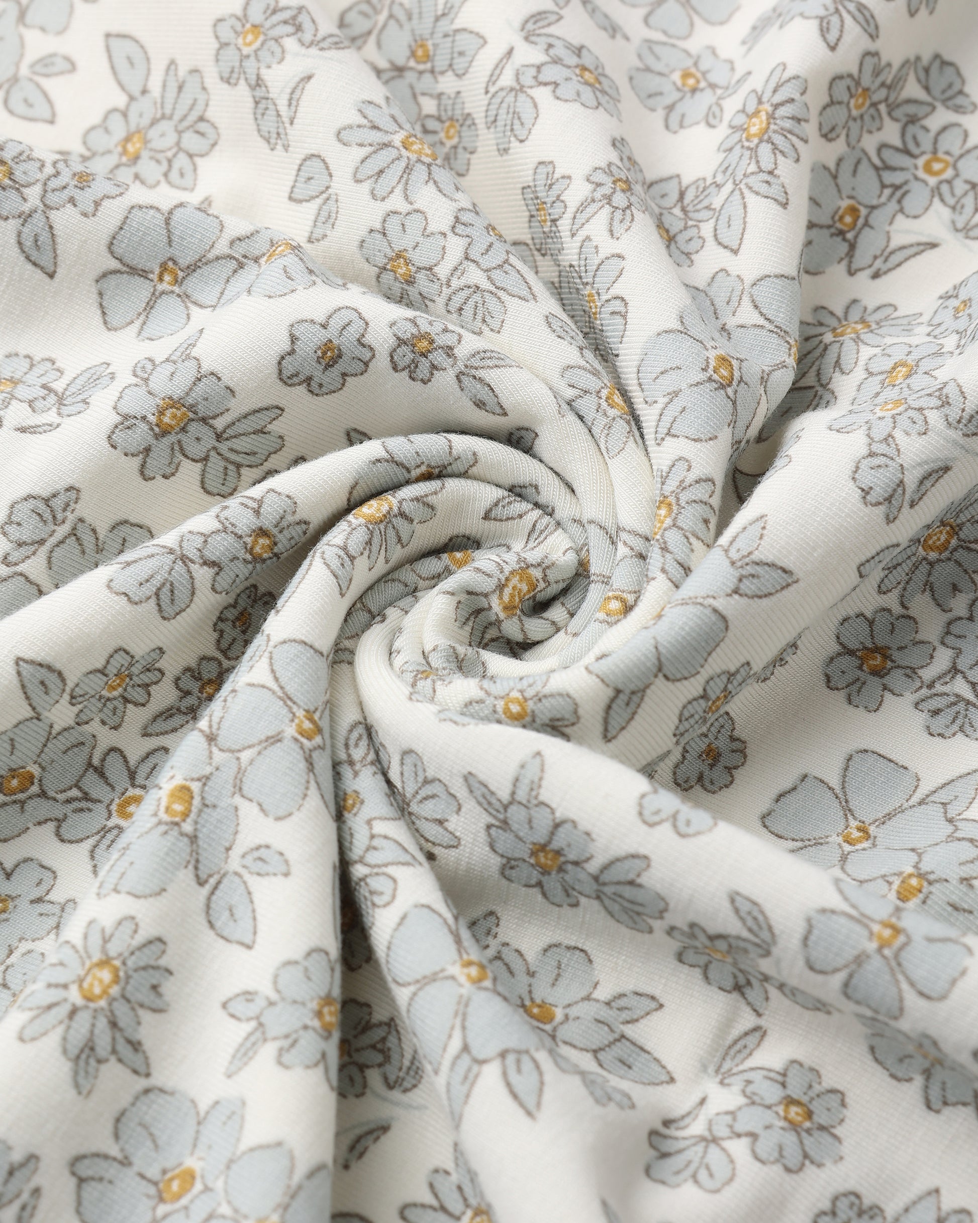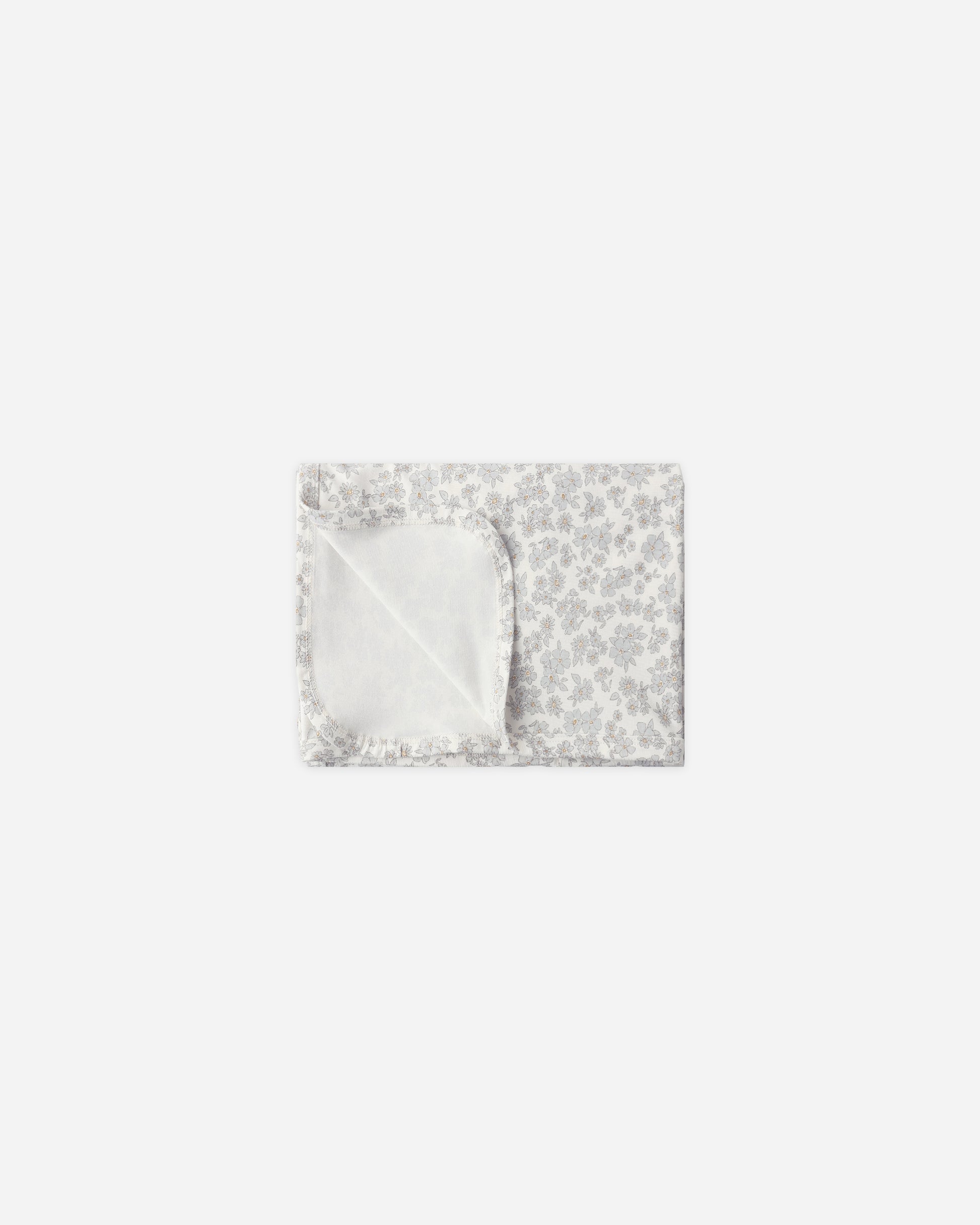 Featuring our ‘blue floral’ print on our 'ivory' hue. This darling print encapsulates vintage nursery feels.