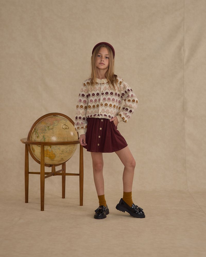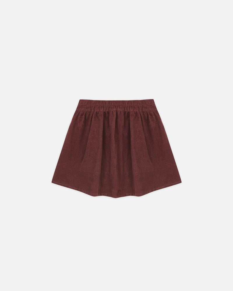 This charming corduroy mini skirt features an elastic back waistband and coconut buttons for a perfectly stylish fit.