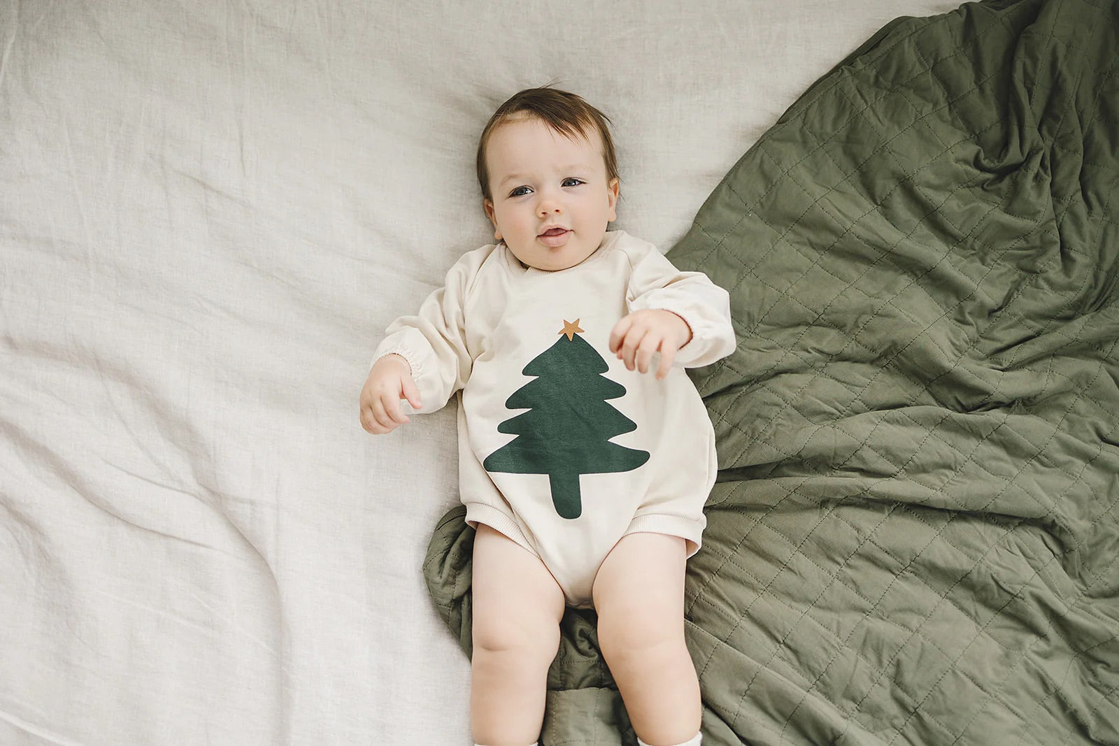 This is our French Terry Bodysuit. They are great to keep your little one warm and comfortable. We have snaps at the bottom for an easy diaper change. Add leggings or high socks for a day out!