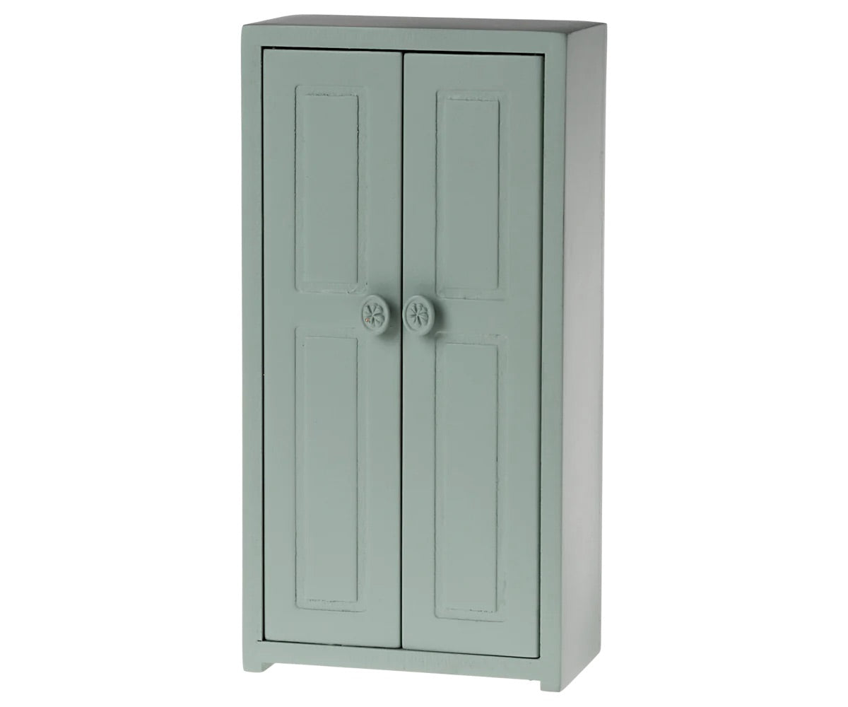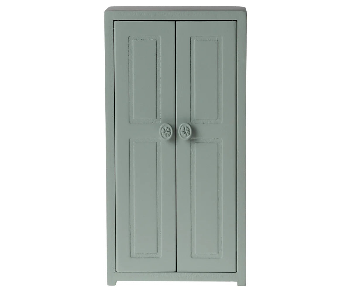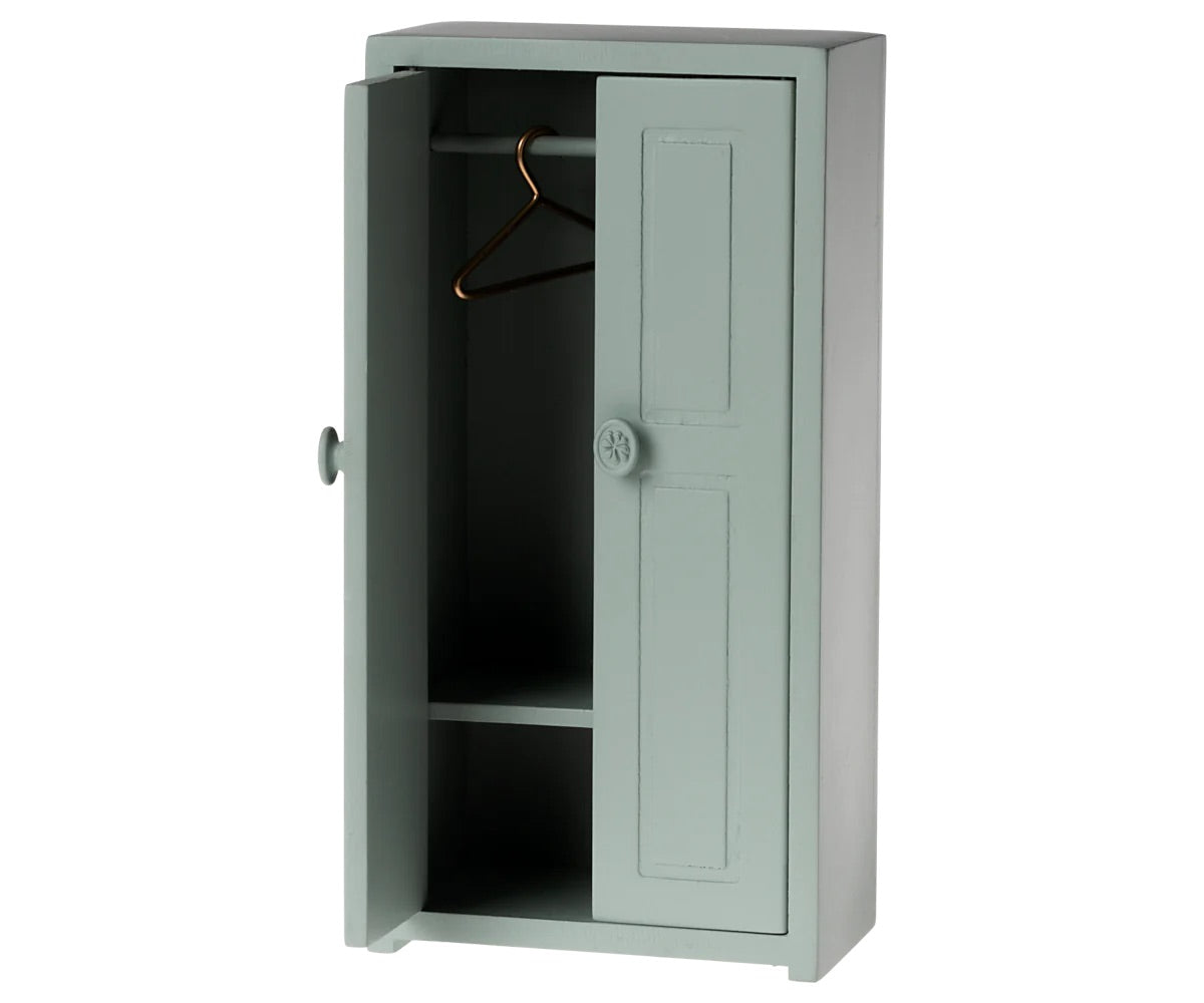 A small closet helps the mice family organize their wardrobe. The closet comes with three golden hangers