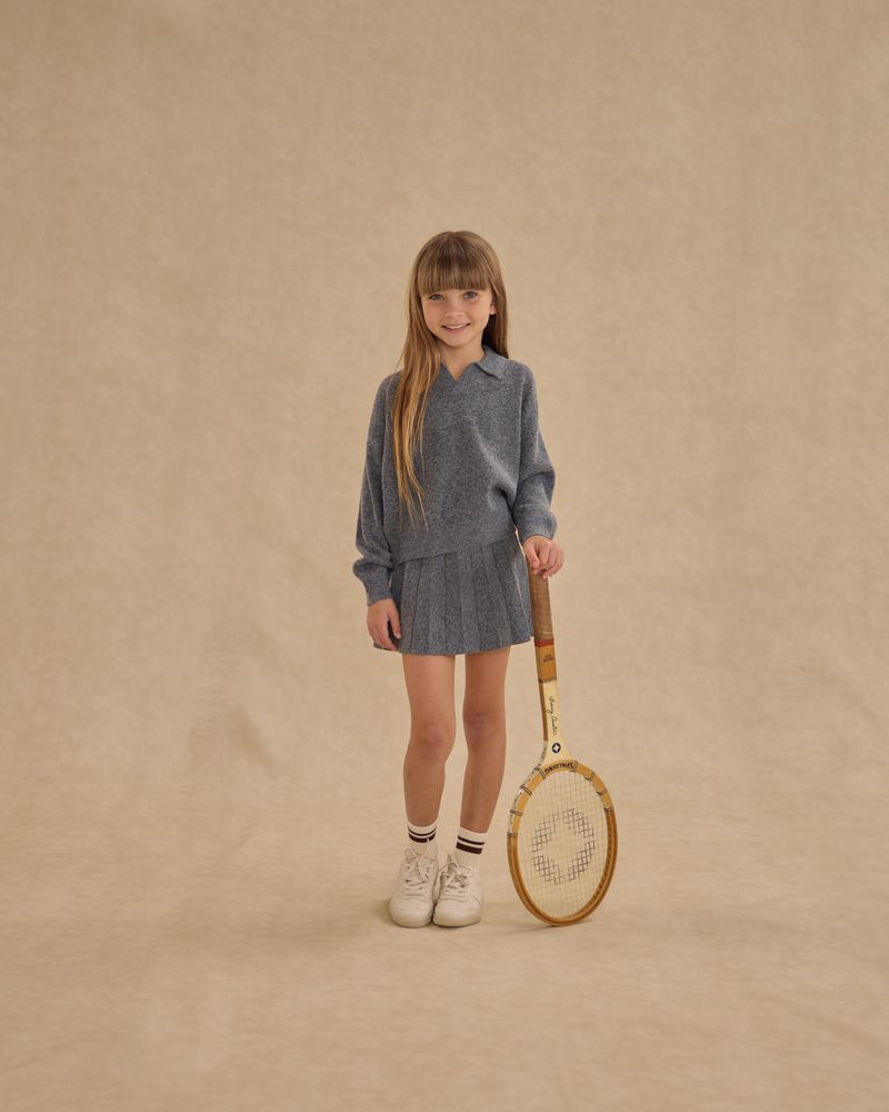 Made from a cozy wool blend, this pullover sweater features a collared v-neckline for timeless style. Pair it with our Knit Pleated Skirt for a cute, preppy look.