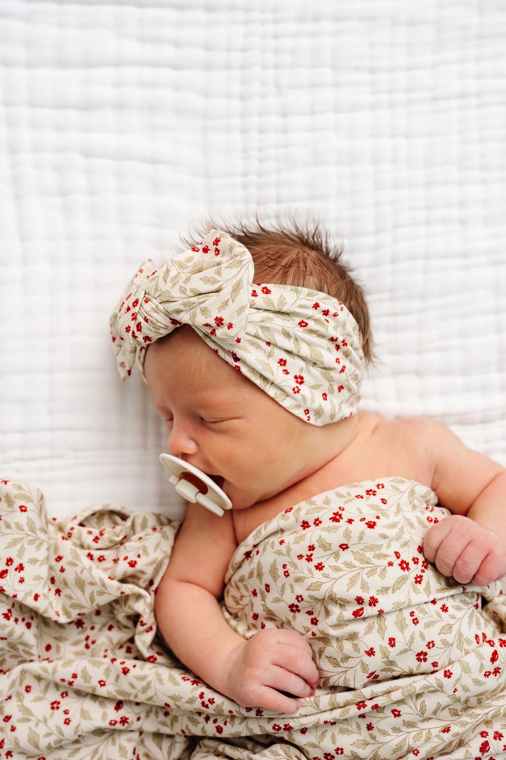 The sweetest accessory hand tied with love. Comfortable enough to wear all day, stretchy enough to grow with her (newborn through toddlerhood), and topped with a bow.