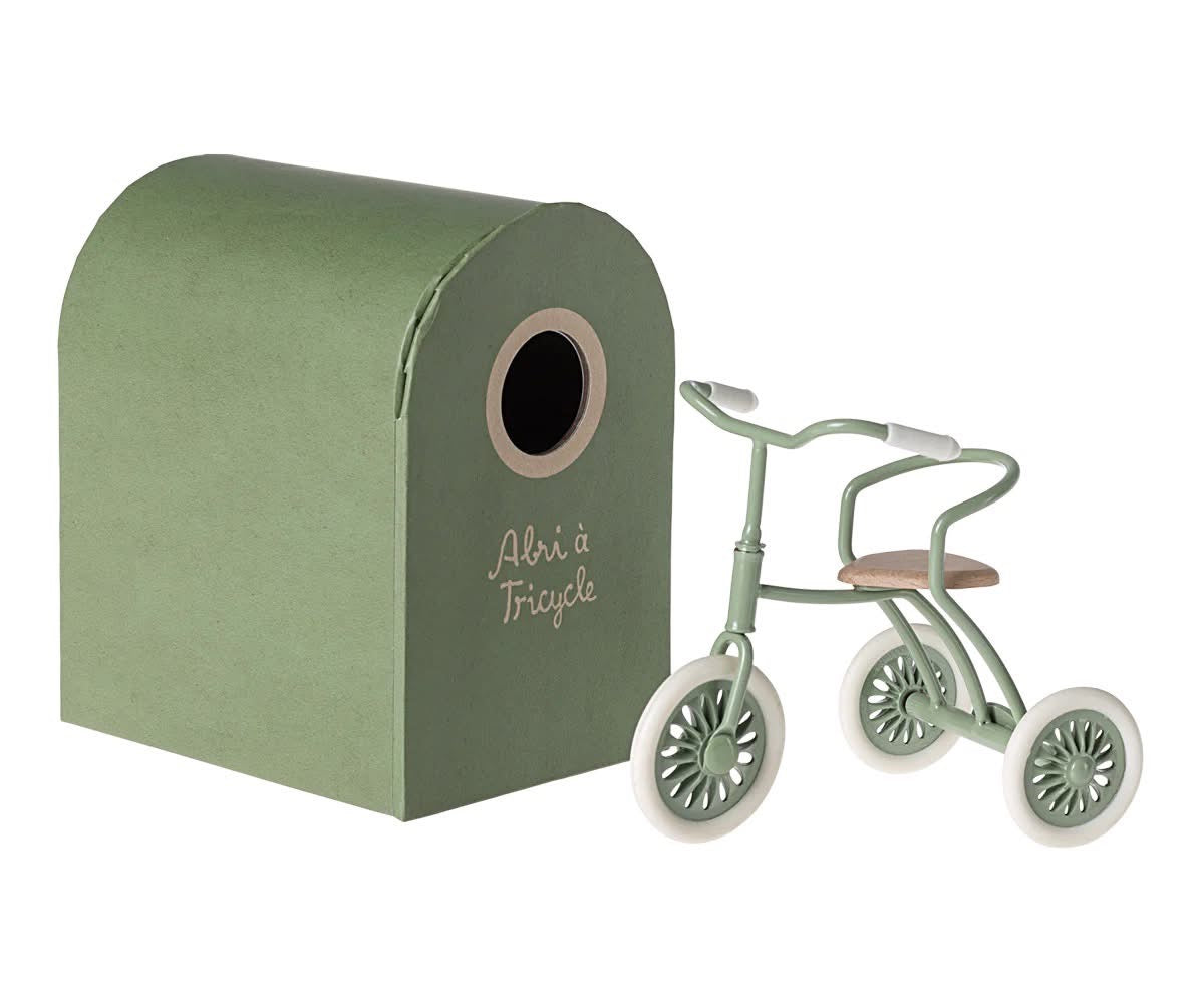Our tricycles are made of metal and have wooden seats that are beautifully shaped. The bikes arrive in decorative boxes that can be used as bike sheds. Our mice friends with magnetic hands can hold onto the handlebars perfectly