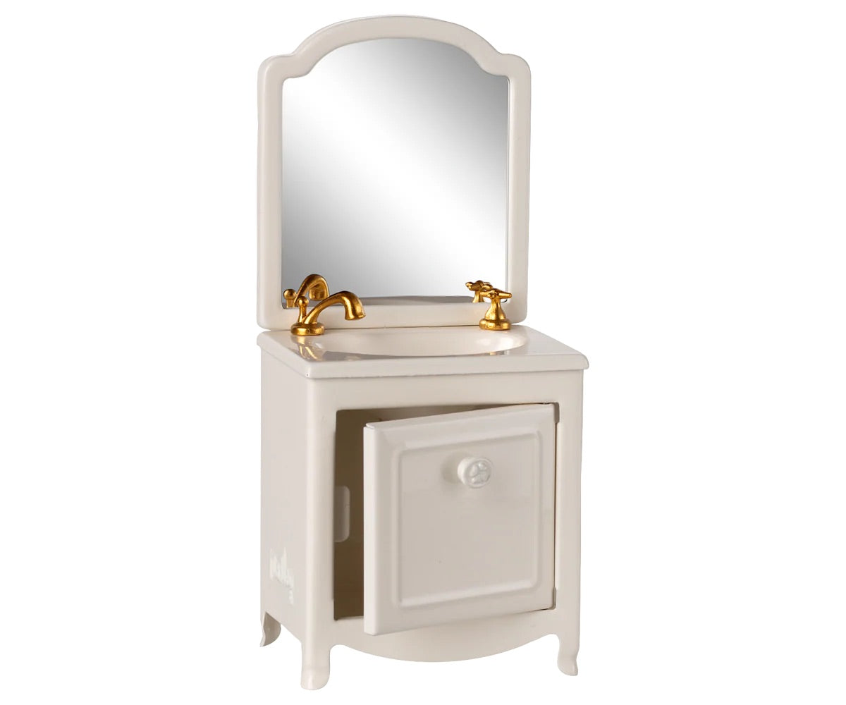 A very essential item for the the bathroom in Mouse hole Farmhouse. It has a small closet under the sink and of course a mirror as well. Add the Maileg toilet and bathtub to extend the play