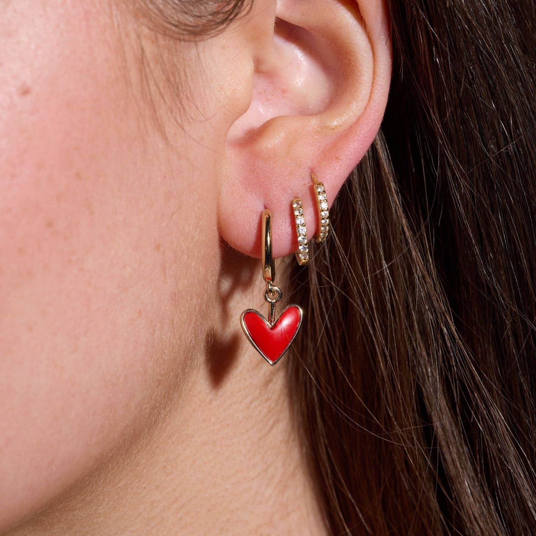 On-trend huggie hoops are ideal for mixing and stacking. Inspired by their namesake statement earring, these petite hoops feature a hanging red coral stone charm in gold plating over brass with a hinged closure.