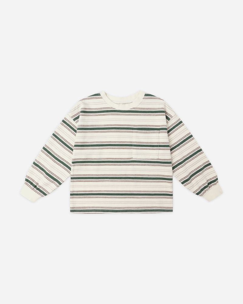 Relaxed-fit long sleeve tee with ribbed neck and cuffs, and a front chest pocket — a comfortable go-to for the season.