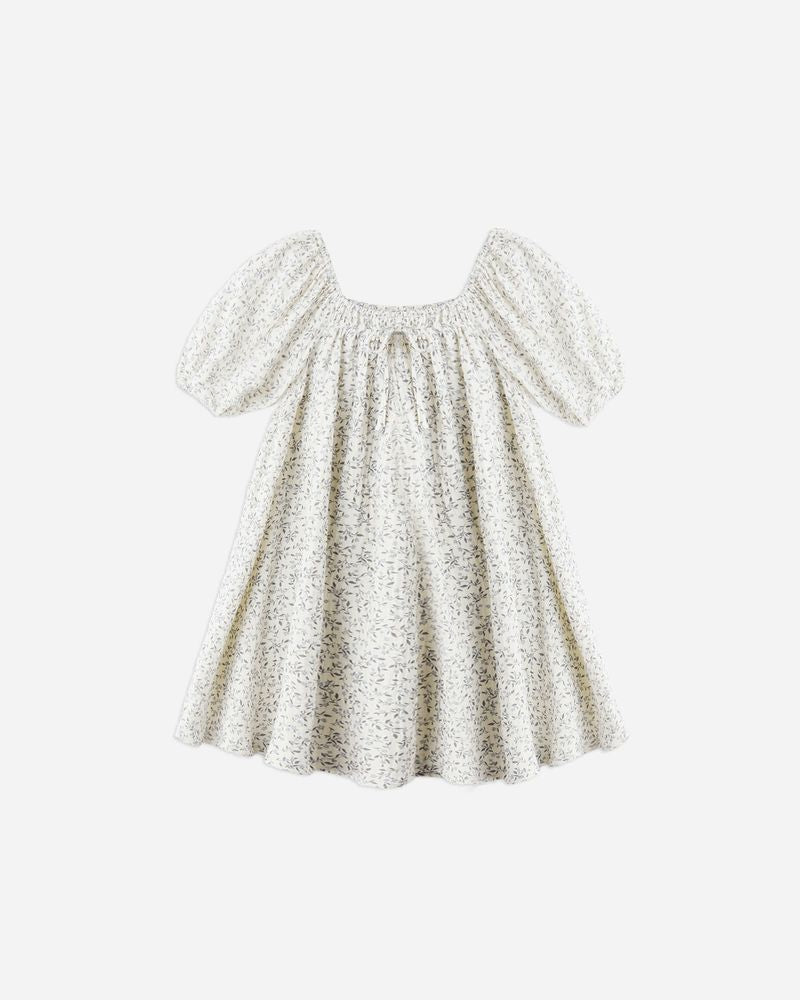 Our Sabrina Mini Dress features smocking at the neckline, a full gathered silhouette, balloon sleeves, and a fixed bow for a sweet finishing touch.