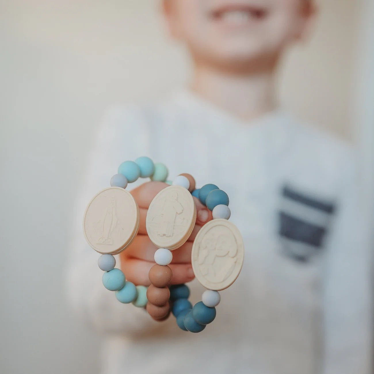 This bracelet is the perfect accessory for your little one. The medal on this bracelet is the St. Benedict medal. It is a great reminder of faith to bring into your child’s daily life.