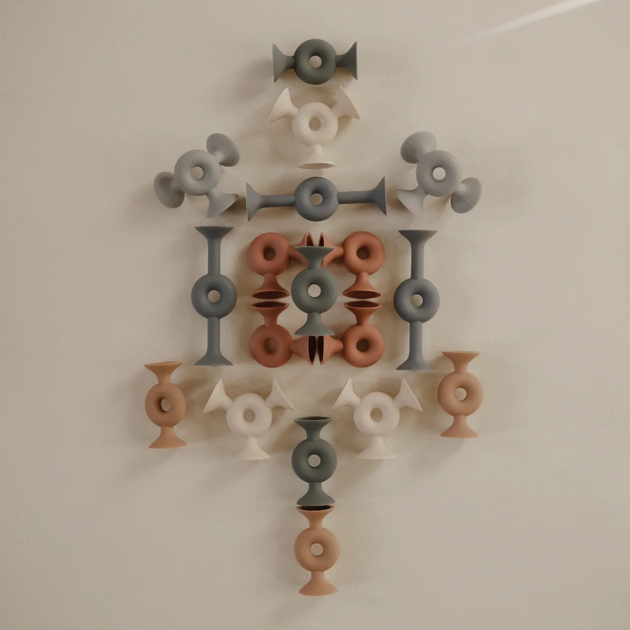 Unleash creativity and fun with this set of 18 silicone suction builder toys. Made from flexible, non-toxic silicone, the pieces easily connect, stack, and stick to smooth surfaces for a versatile toy during play time or bath time. Ideal for fostering motor skills and spatial awareness with endless opportunities to explore and create. When playtime is over, they neatly store away in a reusable storage container that keeps everything organized and ready for the next creation.