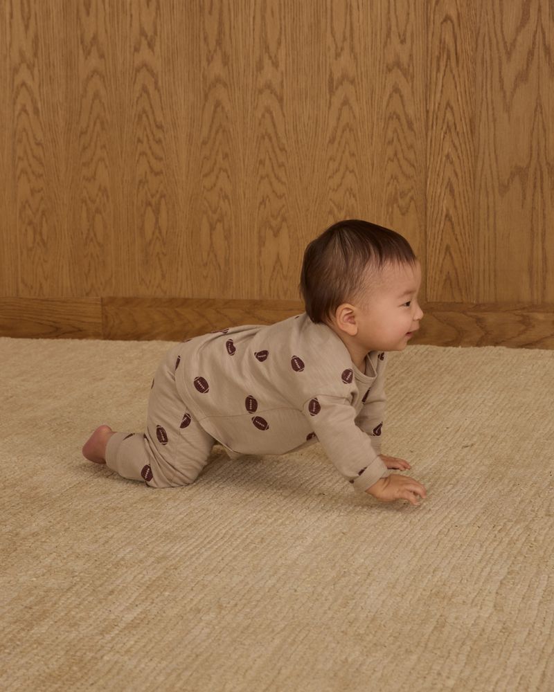 This comfortable cotton jersey set includes a relaxed long sleeve crewneck tee and dropped-crotch slouch pants. Shoulder snaps included on sizes 0–3M - 6–12M for easy changes.