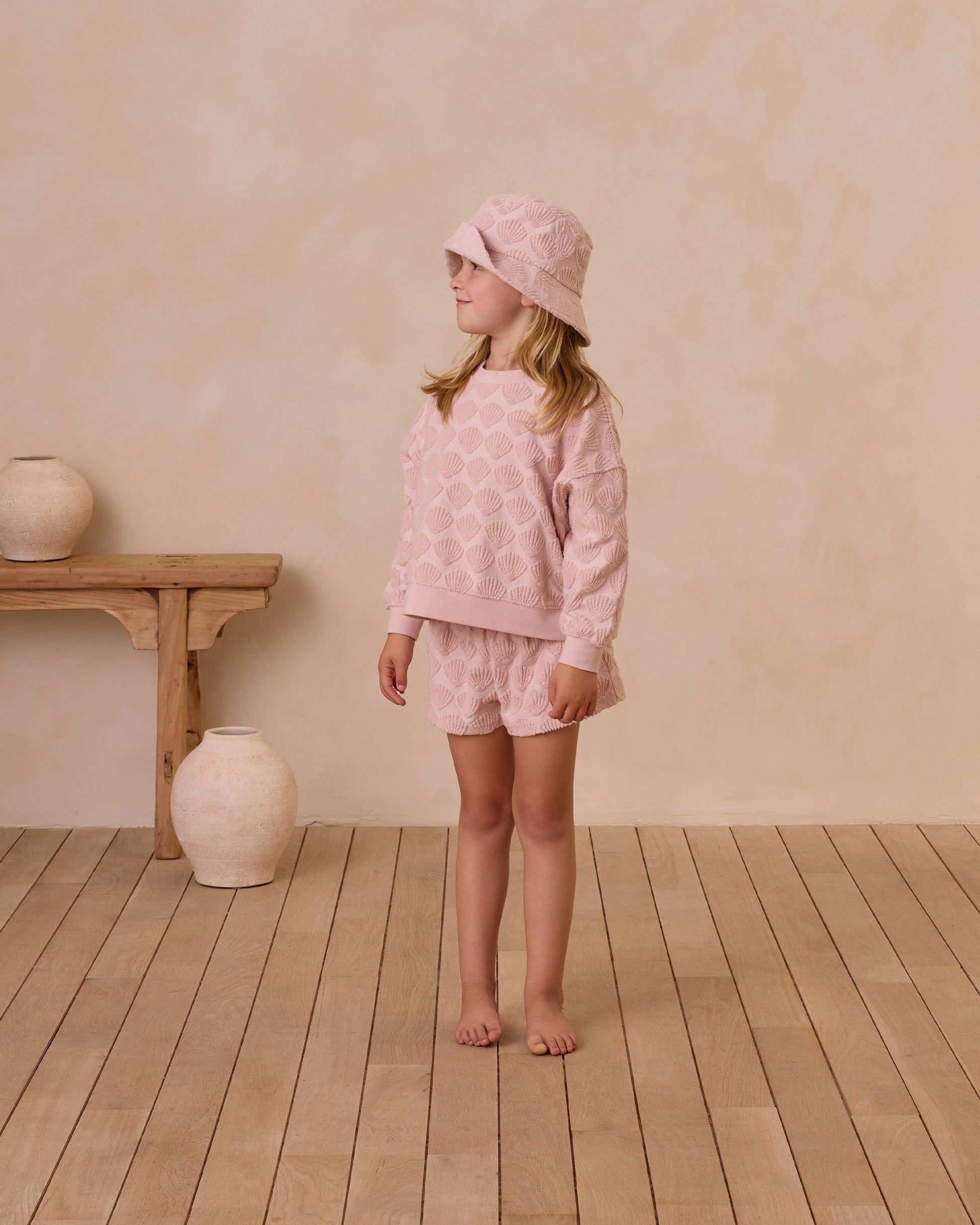 Featuring our ‘shells’ pattern on our ‘pink’ hue. This textured shell style is perfect for breezy beach days.