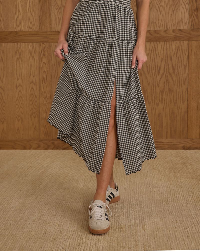 Tiered Midi Skirt || Black Gingham