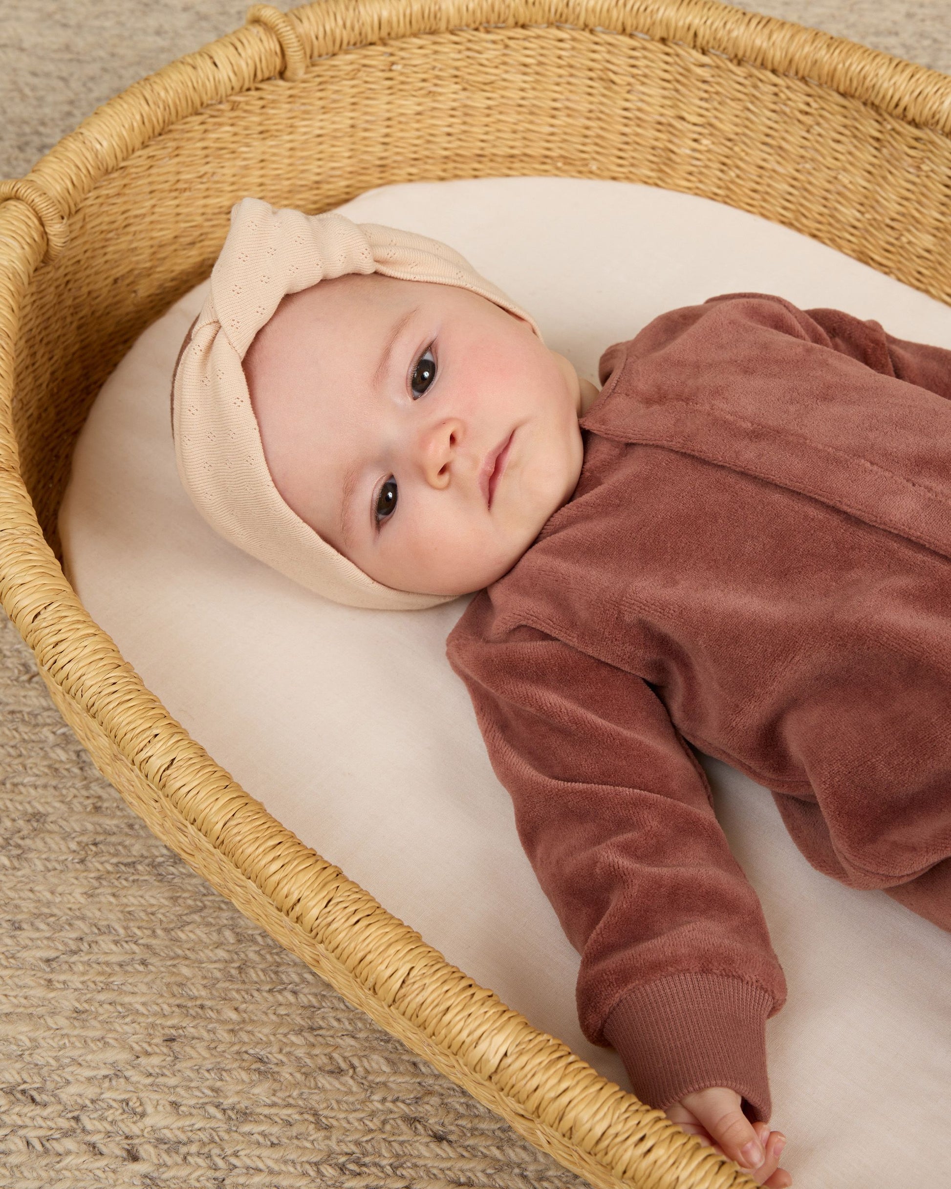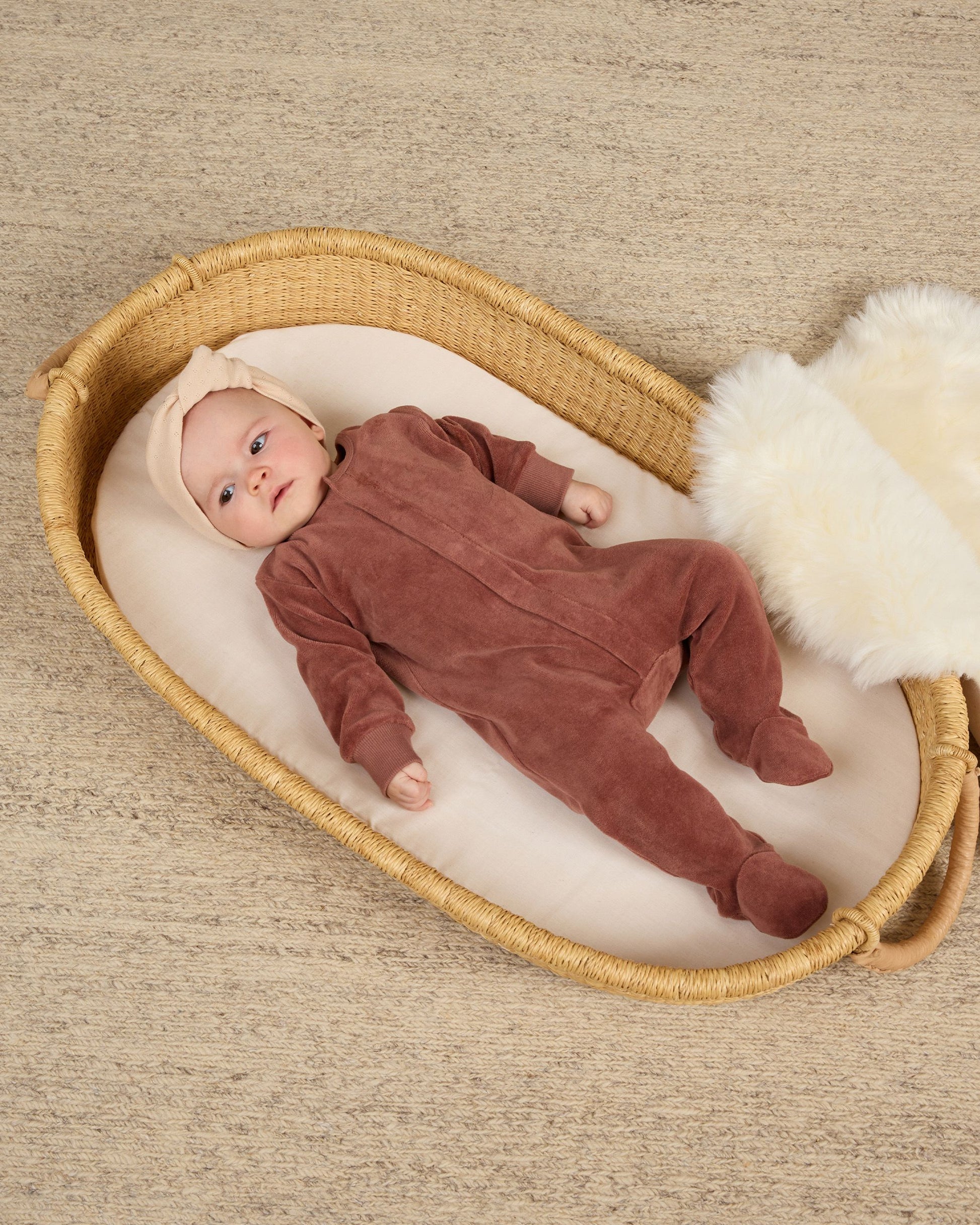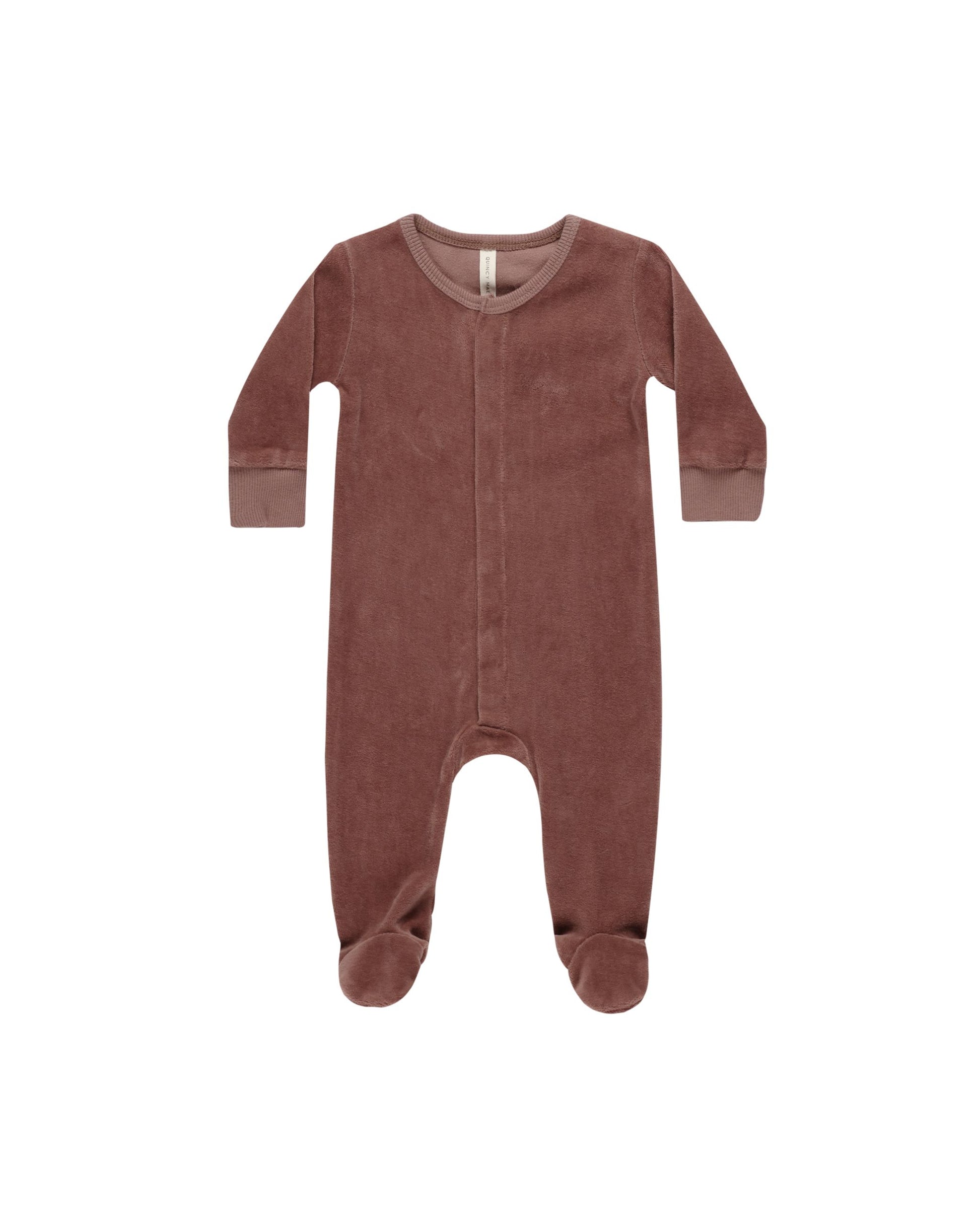 Long sleeve snap footie with hidden snap front placket in our velour fabric.