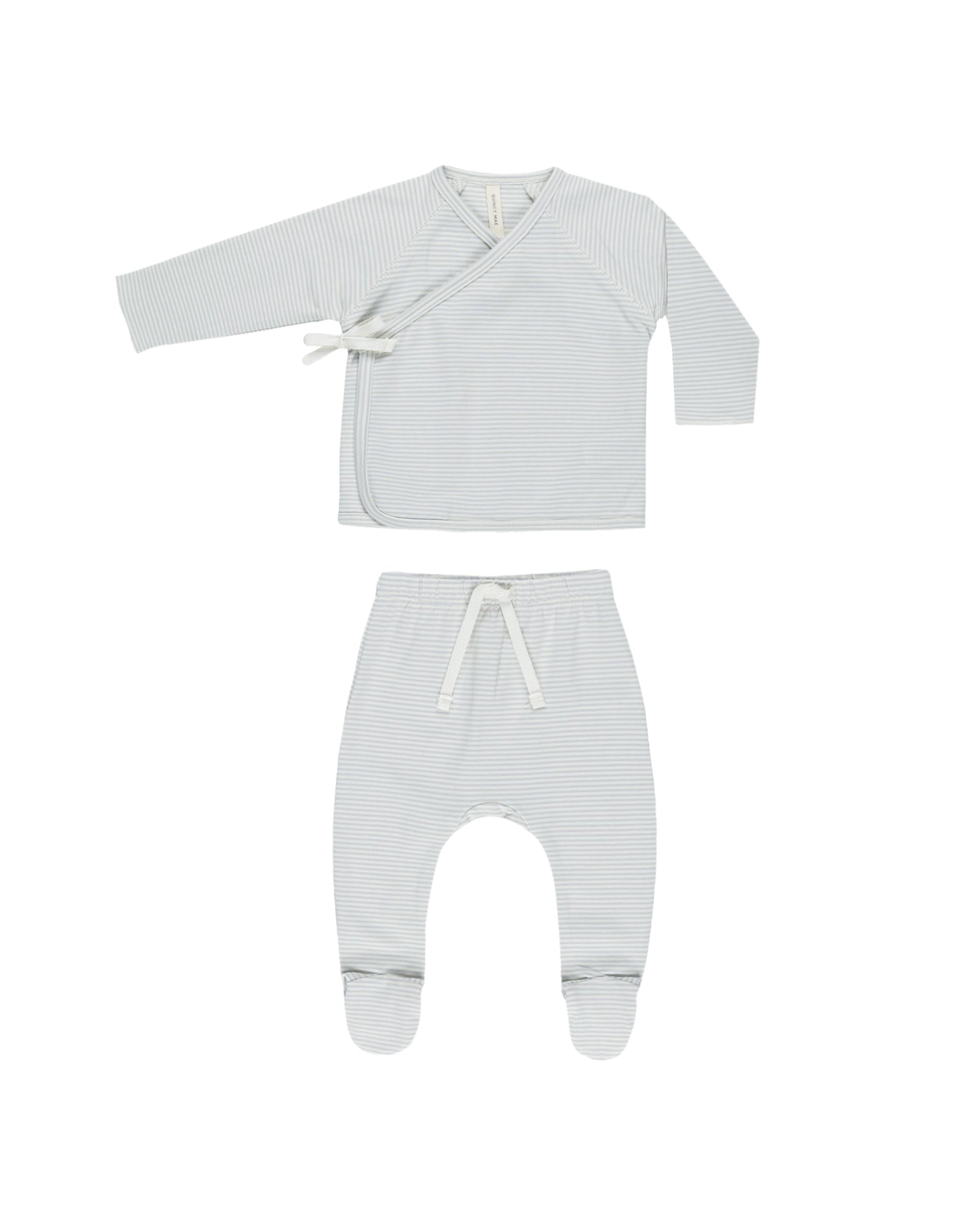 Wrap Top + Footed Pant Set I Sky Micro Stripe